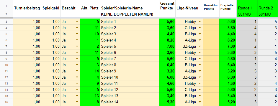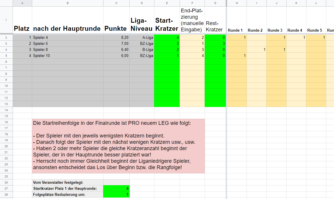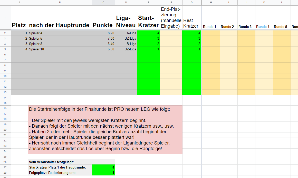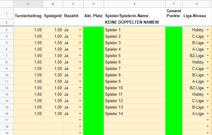 Wechsle aber bitte zum einrichten der Teilnehmer zunächst in das Tabellenblatt "Spieler".