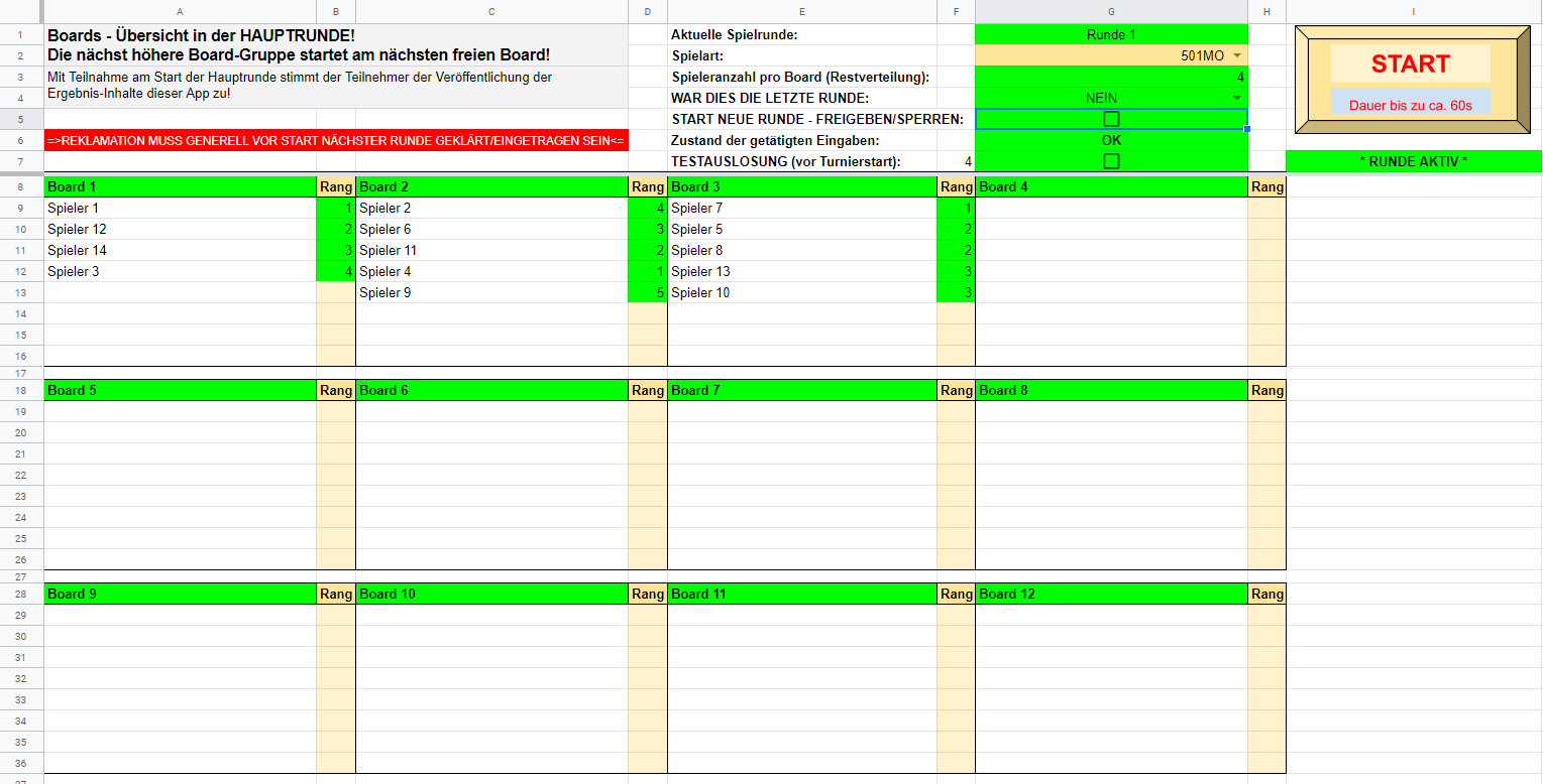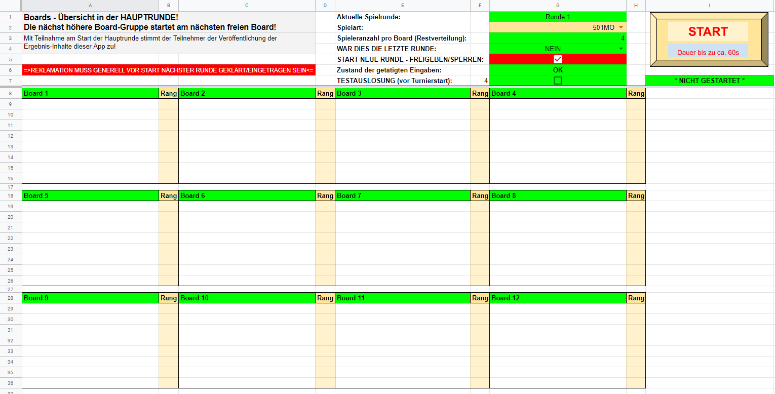 Du siehst zuerst das Tabellenblatt "Boards". Dies ist deswegen so, weil es das am meisten benutzte Tabellenblatt während der Hauptrunde deiner Veranstaltung ist.
